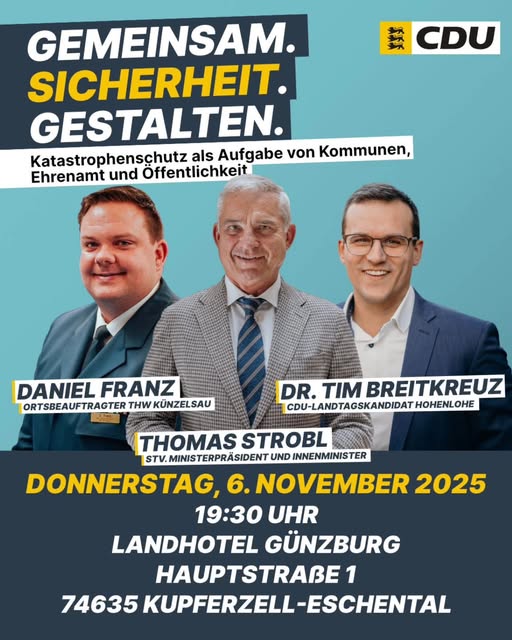 Am vergangenen Freitag, 24.10., lud der CDU-Kreisverband Hohenlohe zum Kreisparteitag mit Wahlen. Kreisvorsitzender Joachim Scholz wurde für seine tolle Arbeit in den letzten Jahren belohnt und mit einem Spitzenergebnis im Amt bestätigt. Gratulation an alle Gewählten!