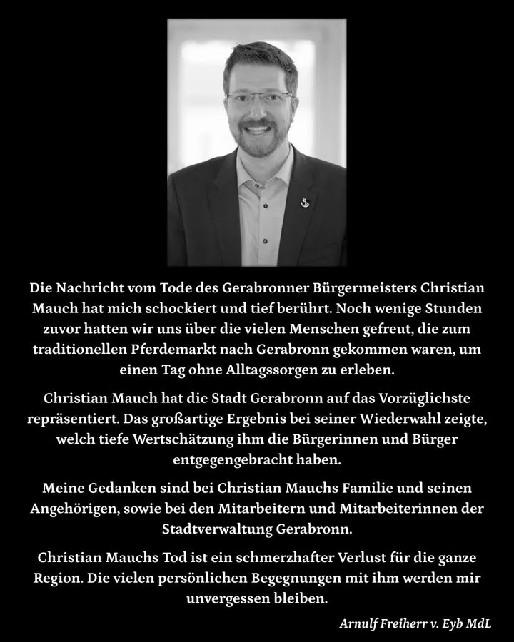 Meine Gedanken sind bei Christian Mauchs Familie und seinen Angehörigen, sowie bei den Mitarbeitern und Mitarbeiterinnen der Stadtverwaltung Gerabronn.